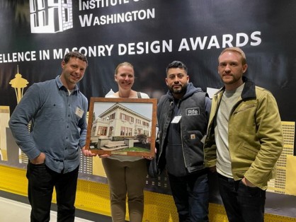 The Gibbs-Sprunk residence (also known as the Gibbs House) project, managed by Senior Associate Becky Wong (pictured second from left), was awarded the 2023 First Place Award for Excellence in the Restoration, Renovation, and Expansion category by the Masonry Institute of Washington (MIW).