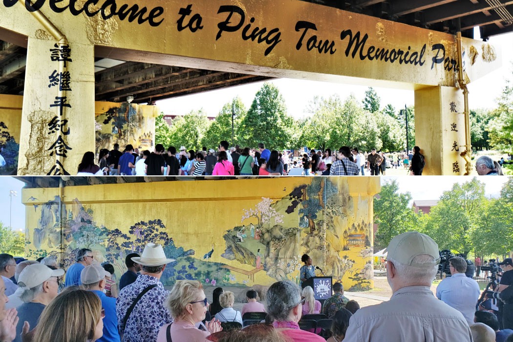 On September 7, the second mural “Between the Mountains and the Water” was unveiled as part of Ping Tom Memorial Park’s 20th anniversary celebration. Congratulations to the Chicago staff who worked on this stunning mural project.