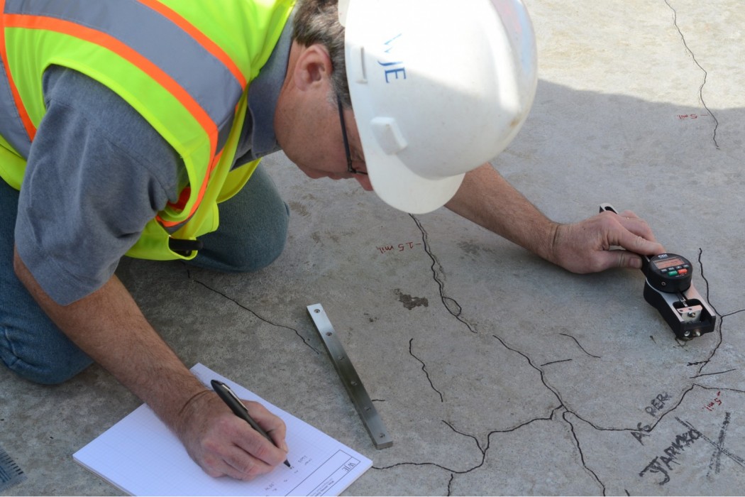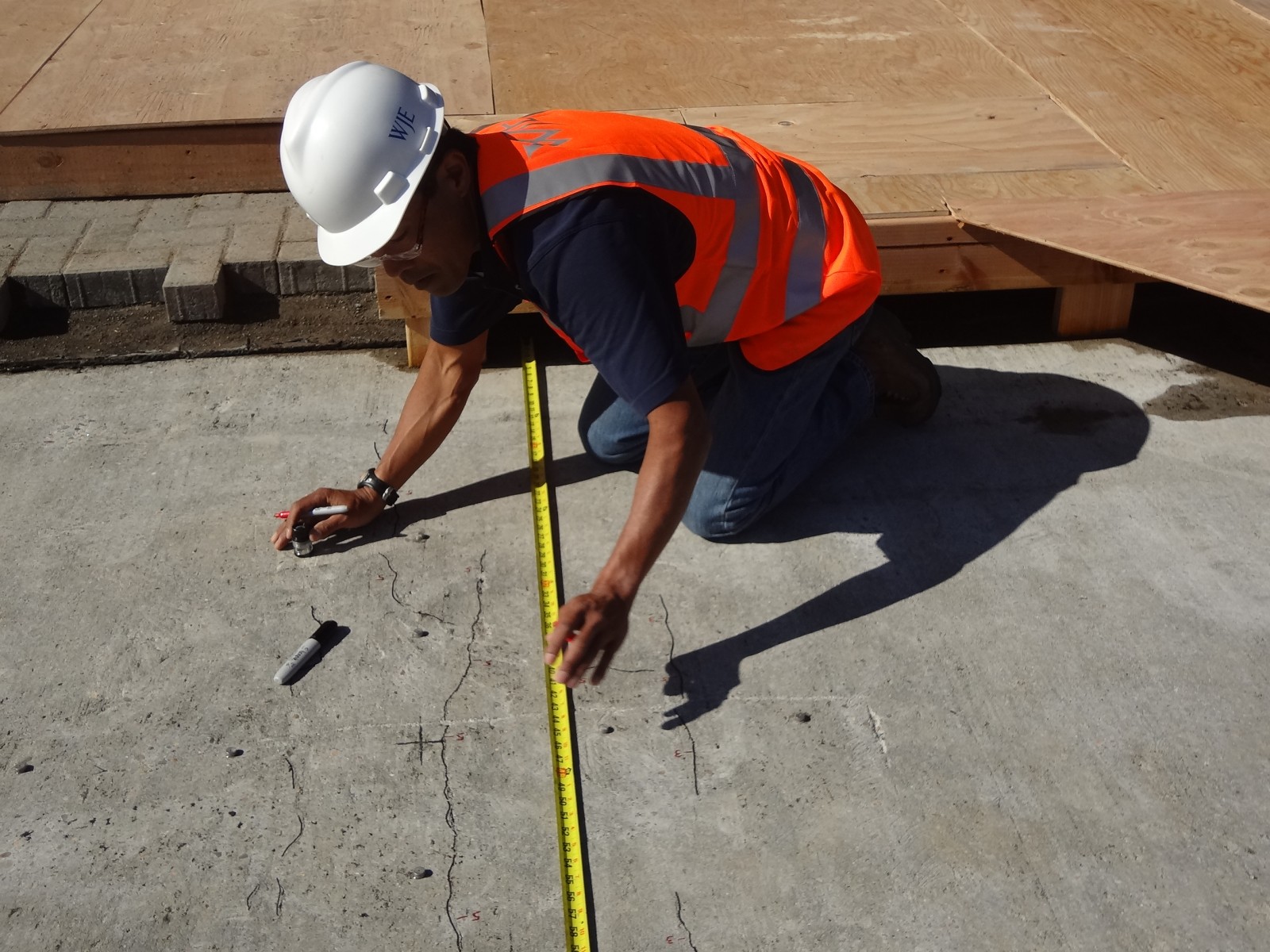 Courthouse Square in downtown Salem, Oregon, is a 163,000-square-foot structure comprised of an office building, a bus mall, and a pedestrian mall situated above a single level of subterranean parking. The property provided office space to county agencies, served as the regional transit hub, and was Marion County's core computer data center. The building's floors are formed by 10-inch post-tensioned flat plate elevated floor slabs that are supported by reinforced concrete columns and walls. In the office building, the 10-inch floor slabs span 38 feet. Shortly after the property opened, cracking was reported in wall, ceiling, and floor finishes.