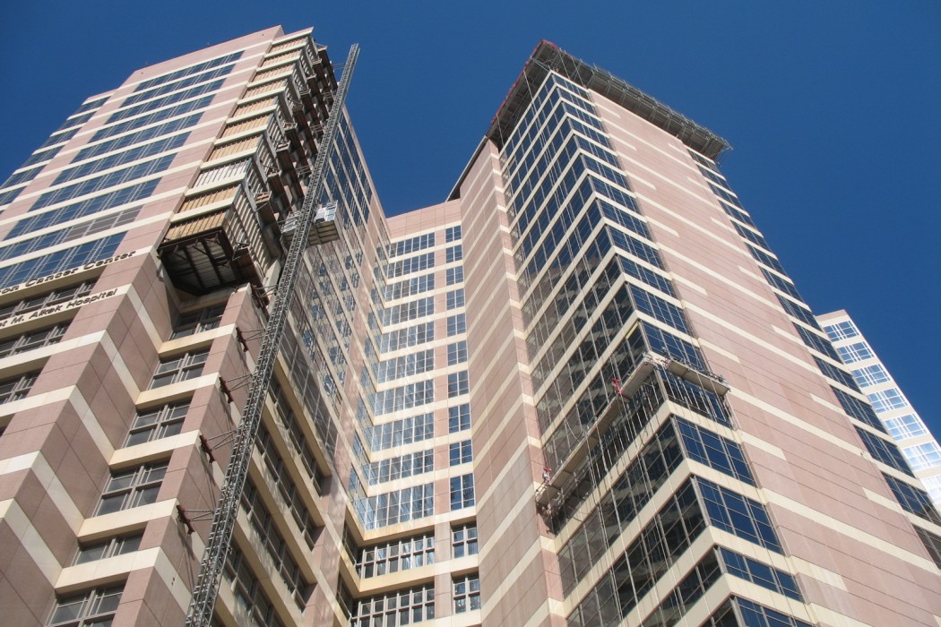 WJE's challenge was to collaborate with McCarthy and HKS (their architectural firm), within a design-build setting, to perform peer reviews of the design development, performance specifications and testing criteria for the glazed window wall, waterproofing, roofing and GFRC wall panels systems as well as provide construction and testing observation services. The project's abutment to an active hospital facility provided numerous interfacing challenges, especially related to maintaining the weathering integrity of the existing structure.