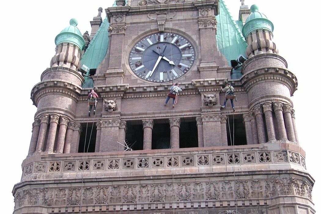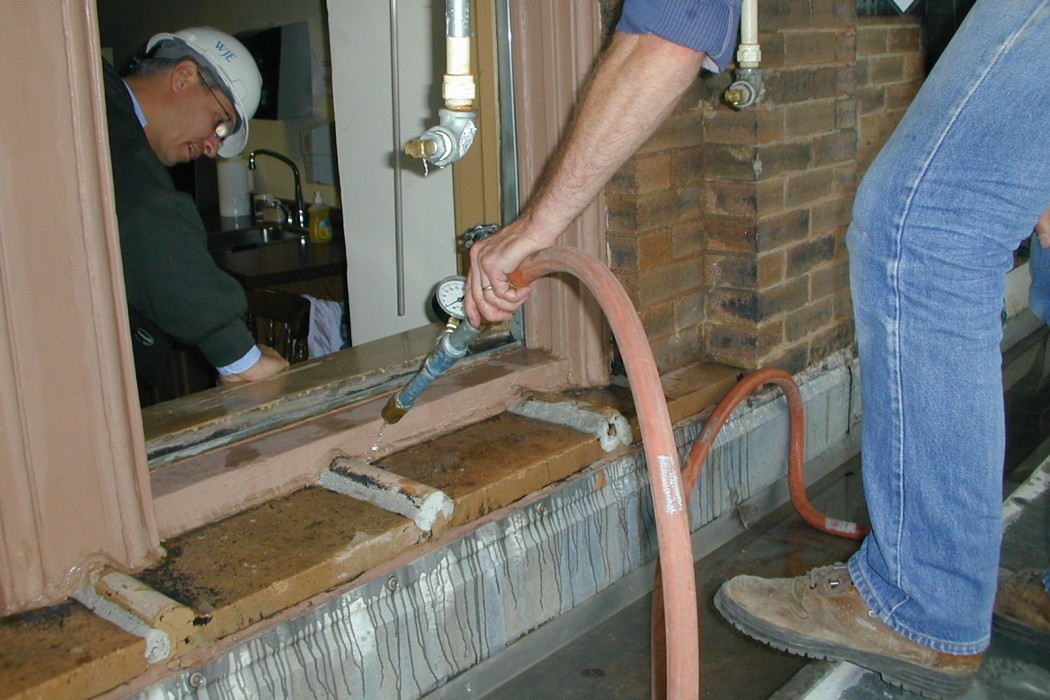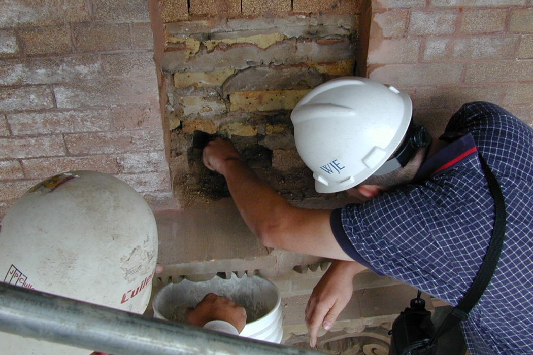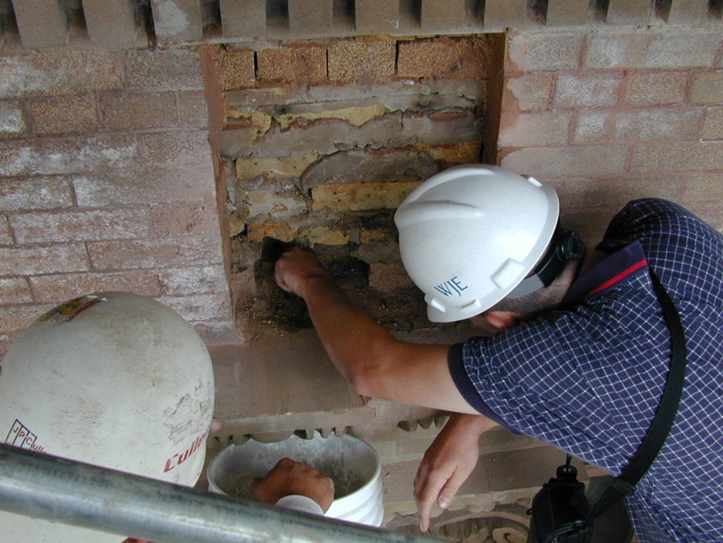 WJE's comprehensive investigation of the structure included a condition survey of the entire facade, inspection openings, sample removal, laboratory materials studies, cleaning studies, water infiltration testing, and instrumentation monitoring.
