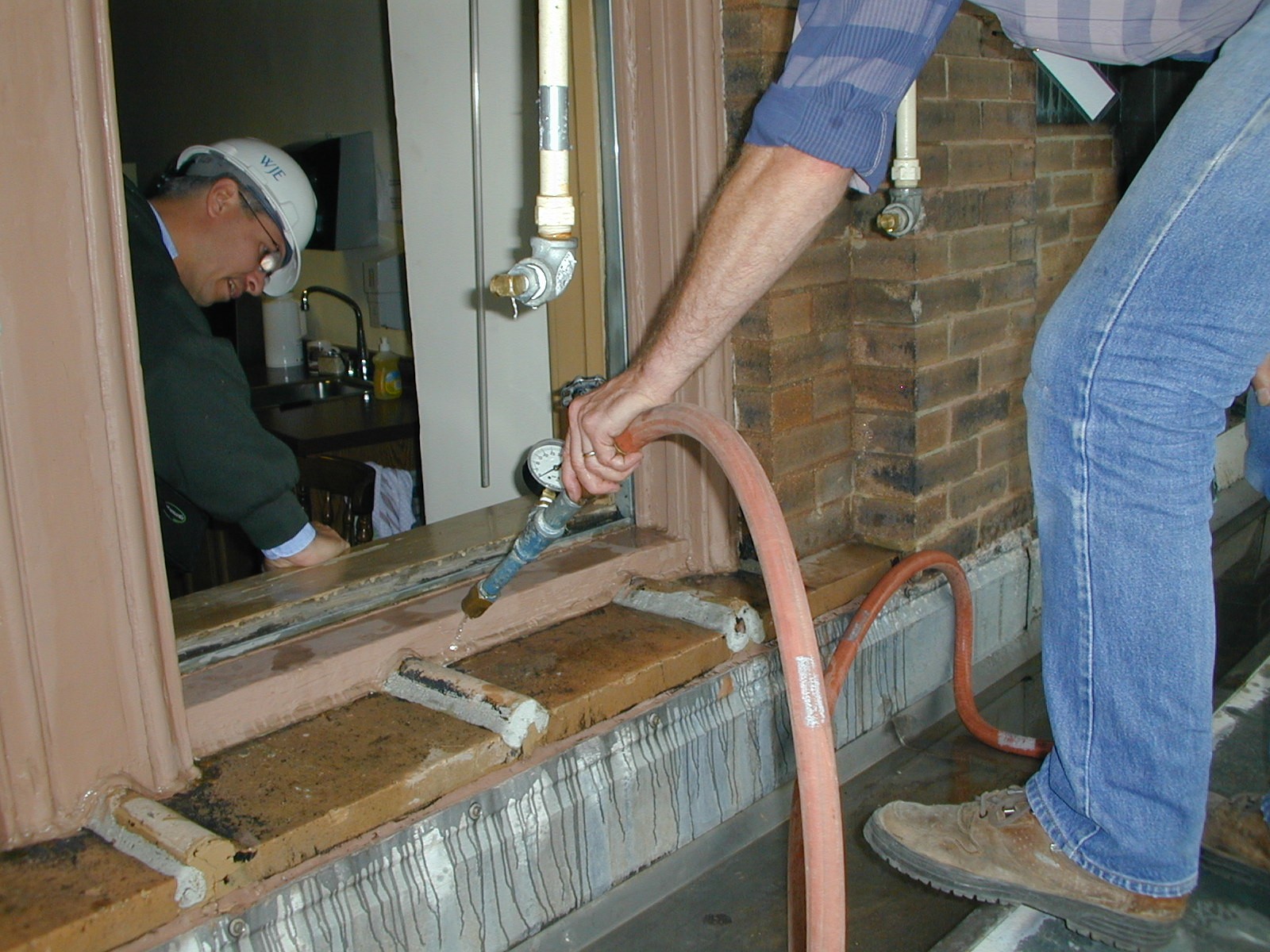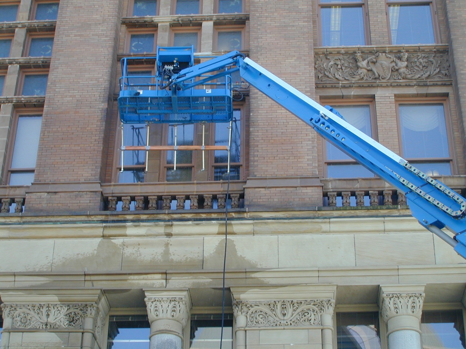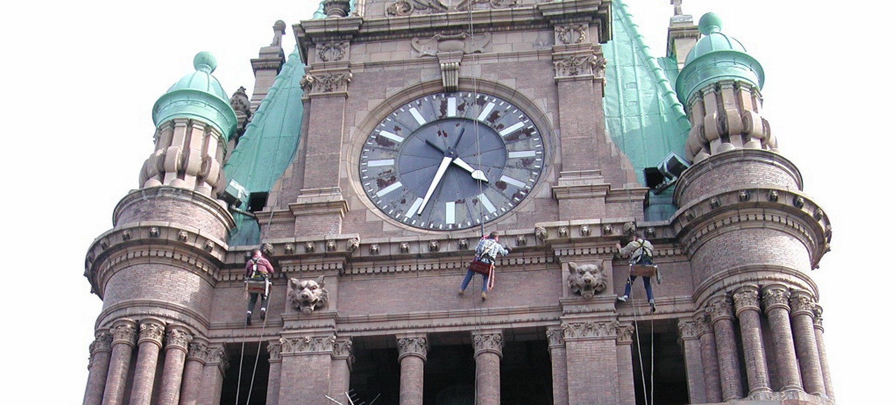 WJE's comprehensive investigation of the structure included a condition survey of the entire facade, inspection openings, sample removal, laboratory materials studies, cleaning studies, water infiltration testing, and instrumentation monitoring.