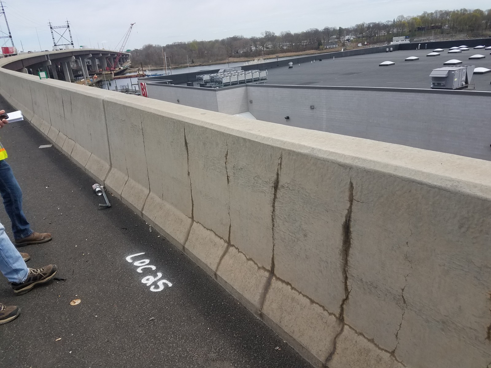 Shortly after construction, cracking and staining of the slip-formed concrete barrier walls was identified by the Connecticut Department of Transportation (CTDOT). They requested that the contractor perform an investigation to determine the cause of the cracking and prove a material defect did not exist.