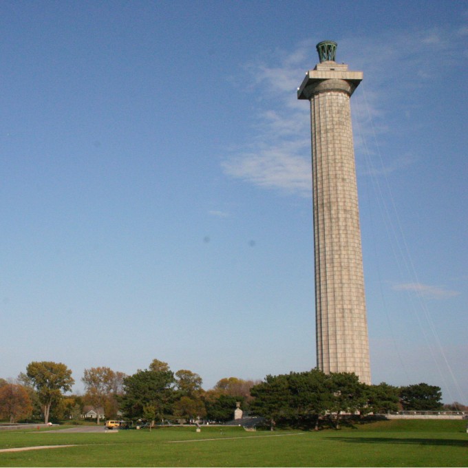 Located on an isthmus of South Bass Island in Lake Erie, the memorial honors those who fought in the battle of Lake Erie during the War of 1812 and celebrates the long-lasting peace between Britain, Canada, and the United States. The memorial, completed in 1915, is built of Milford Pink granite with an unreinforced concrete backup for the column shaft and a reinforced concrete structure clad with granite for the observation deck and plaza levels. The column is capped by an eleven -ton bronze lantern.