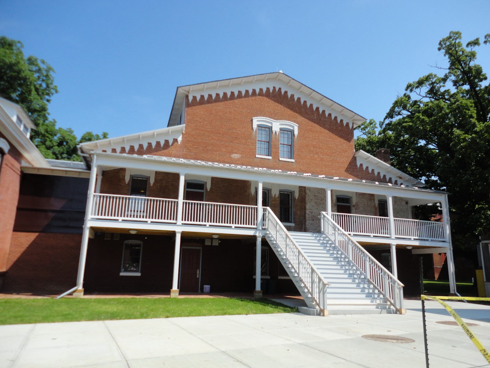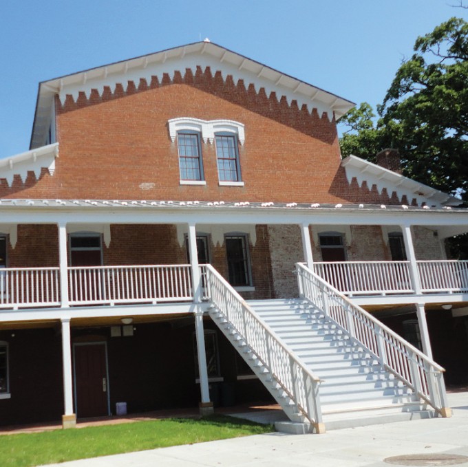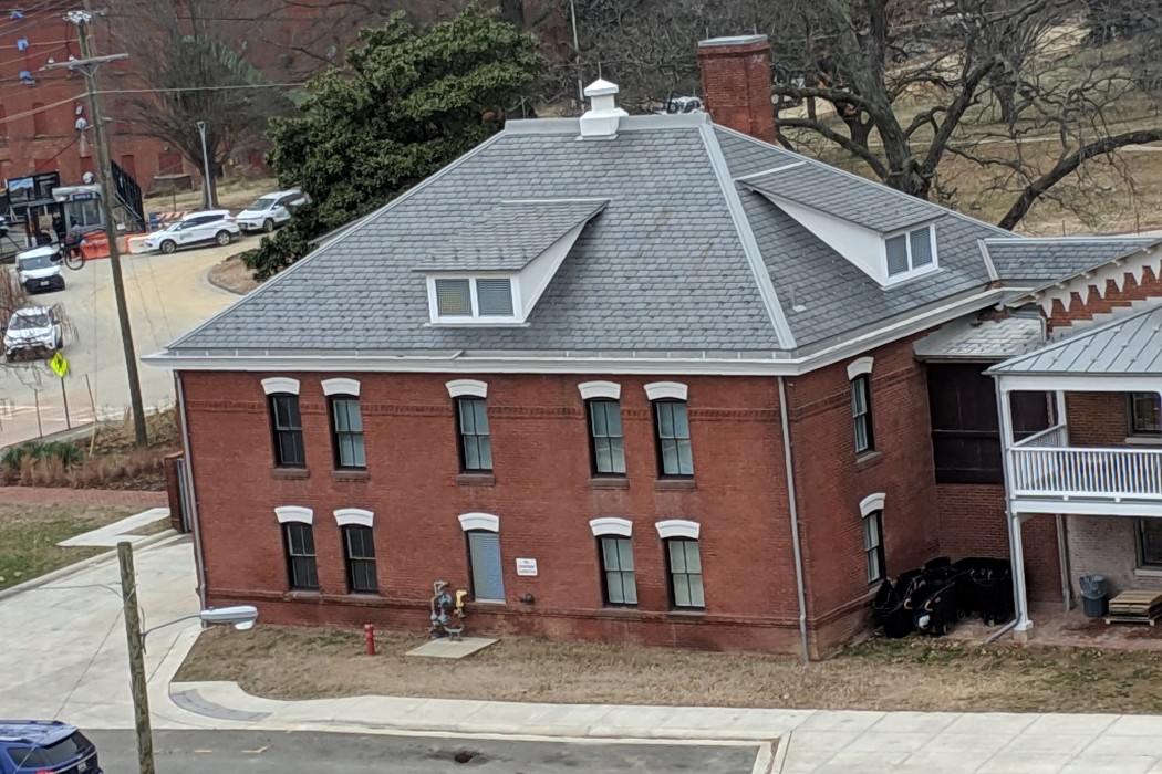 For the first adaptive reuse project on the campus, WJE developed construction drawings and specifications for ten buildings, including the design of building envelope restoration, blast resistant design, and structural upgrades. The building envelope work included brick, terra cotta, and stone masonry repair and selected replacement; slate, clay tile, and metal roofing replacement (including new underlayments and drainage management elements); repair and painting of exterior wood trim and porches; and restoration of original wood window and door systems. The structural work included reinforcing of original wood and iron structures as well as the design of new floor and roof assemblies to replace severely deteriorated elements. WJE also provided construction phase support services including regular site visits, responses to RFIs or changed conditions, and quality control monitoring.