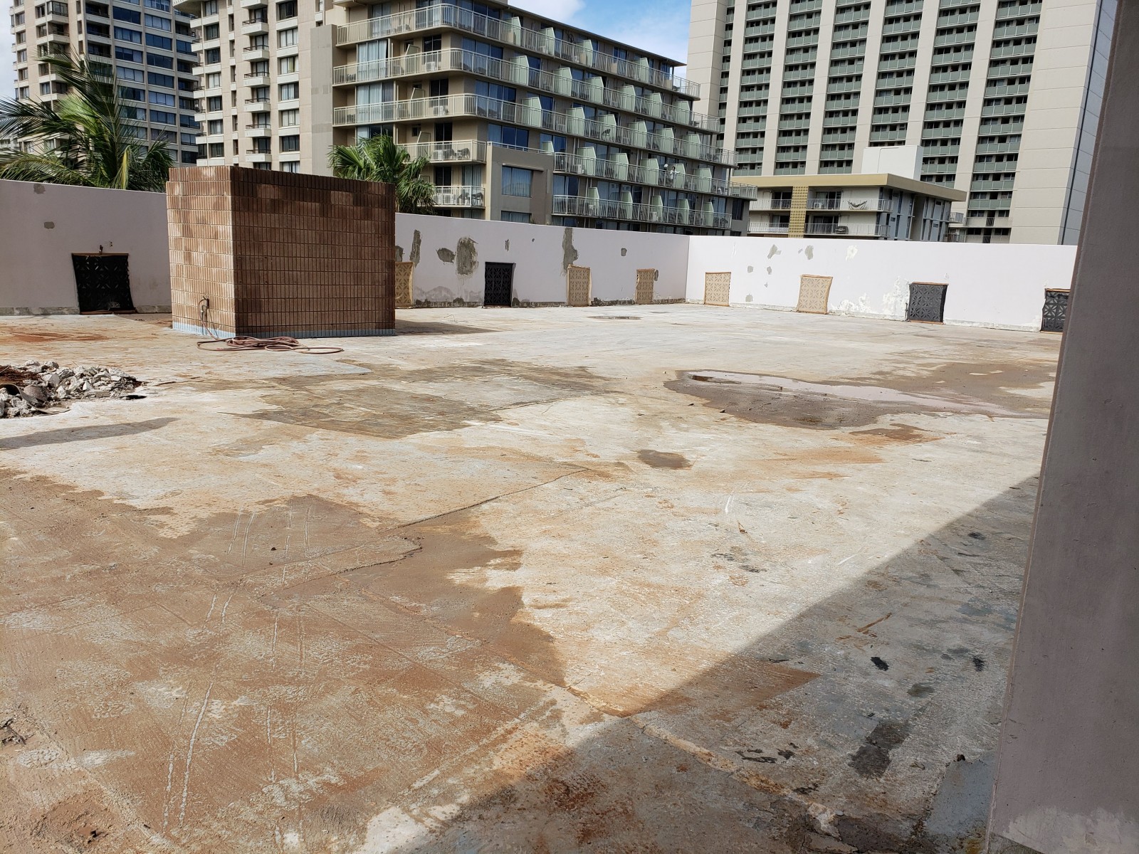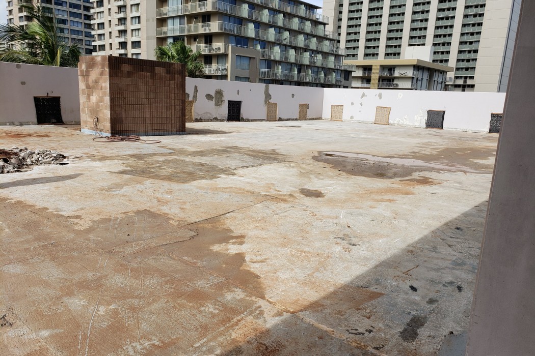The Royal Kuhio retained WJE to perform a limited investigation and provide design services for part of the recreation deck and the elevator lobby. Our primary scope of work was to repair the structural deck, replace the deck waterproofing, and install new tile finishes and one wind screen. As the project progressed, our scope was expanded to include design and construction administration for additional deck amenities and construction management for the replacement of the pool.