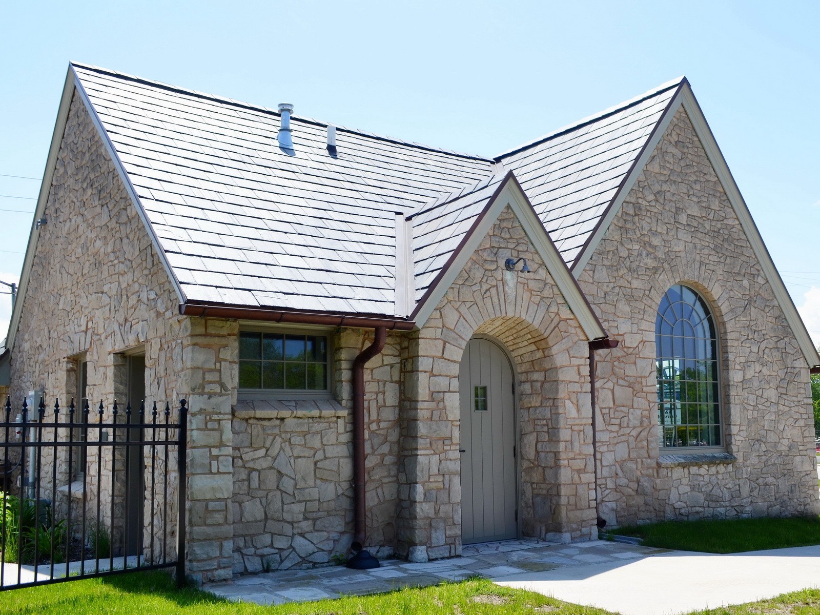 The design of the restoration included replacement of the original slate tile roof and exterior walls. The interior was gutted and rebuilt with upgraded MEP systems and interior finishes sympathetic to the historic significance of the original building. The site plan for the property incorporated new parking surfaces as well as landscape features to create a functional property for the public safety services that would occupy the building.